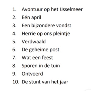 Donderdag: Kies twee titels en bedenk hierbij het verhaal, denk aan de plottwist. In het klad